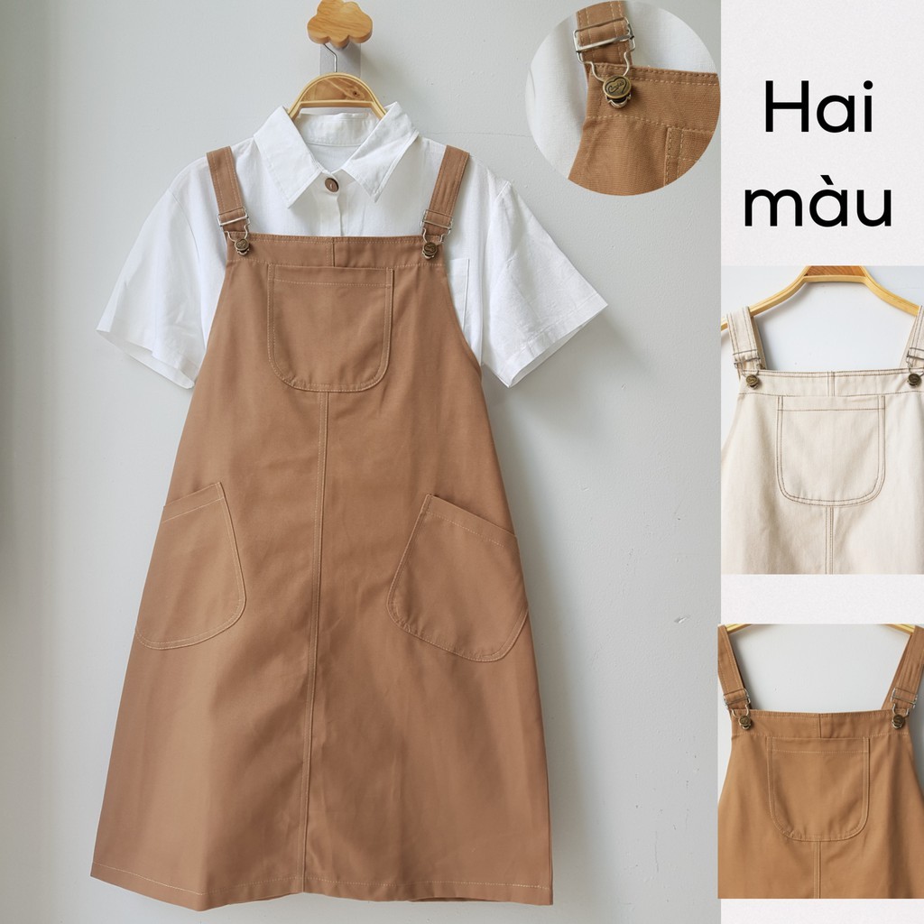 Đầm Yếm váy Kaki chỉ nổi dáng suông Vintage free ship